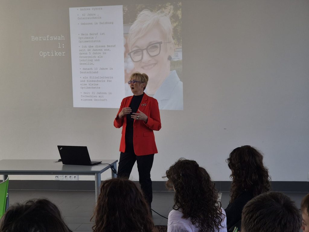 Ve své přednášce poskytla praktický vhled do svého každodenního pracovního života, který daleko přesahuje pouhý prodej brýlí. Vysvětlila, že optici působí jak v oblasti zdravotnictví – například při vyšetření zraku a přizpůsobování kontaktních čoček – tak i v