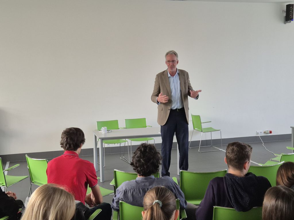 Die Klassen 5A und 5B erhielten dabei einen spannenden Einblick in die vielseitige Welt der Rechtsberatung. Herr Dr. Hanslik erklärte, wie die Ausbildung zur Rechtsanwältin bzw. zum Rechtsanwalt abläuft, welche persönlichen Fähigkeiten und Eigenschaften in diesem Beruf besonders wichtig sind und welche unterschiedlichen Tätigkeitsfelder das juristische Arbeiten umfasst.
