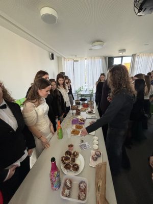 Teil der Veranstaltung am Freitag war auch ein Kuchenverkauf, der von den FünftklässlerInnen organisiert wurde. Dort konnte man die unterschiedlichsten hausgemachten Leckereien kaufen, und auch dieser Teil der Veranstaltung war ein Erfolg und rundete das gesamte Programm angenehm ab.
